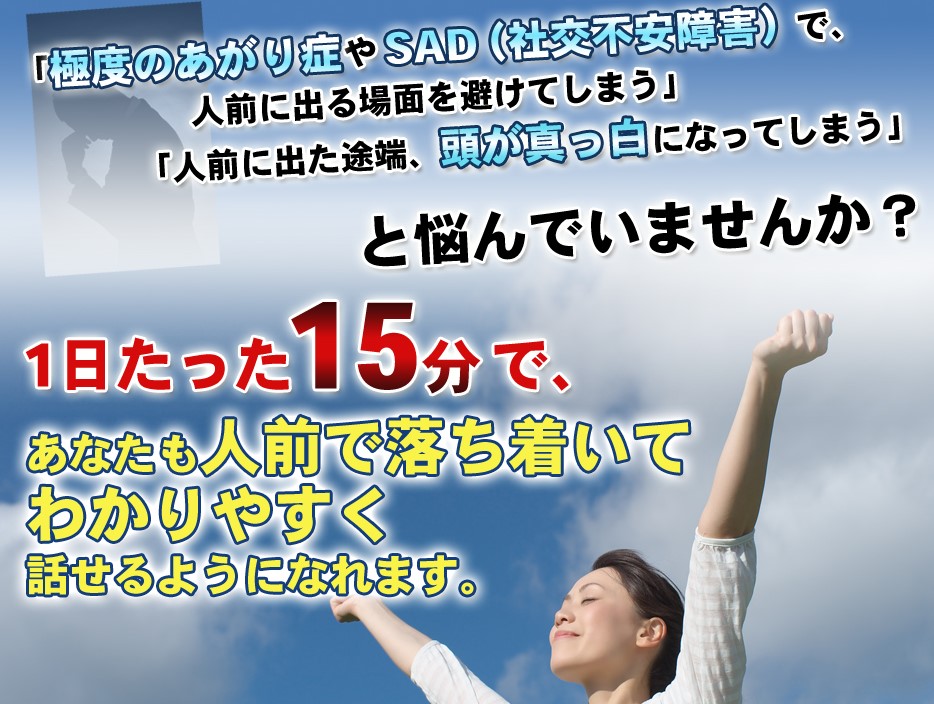 1日たった15分の取り組みで、あがり症を改善できるプログラムが注目を集めています。
