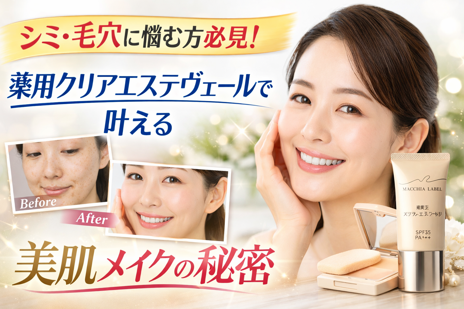 実はその肌悩み、**薬用クリアエステヴェール**で自然にカバーしながら、美しく魅せることができるんです。
