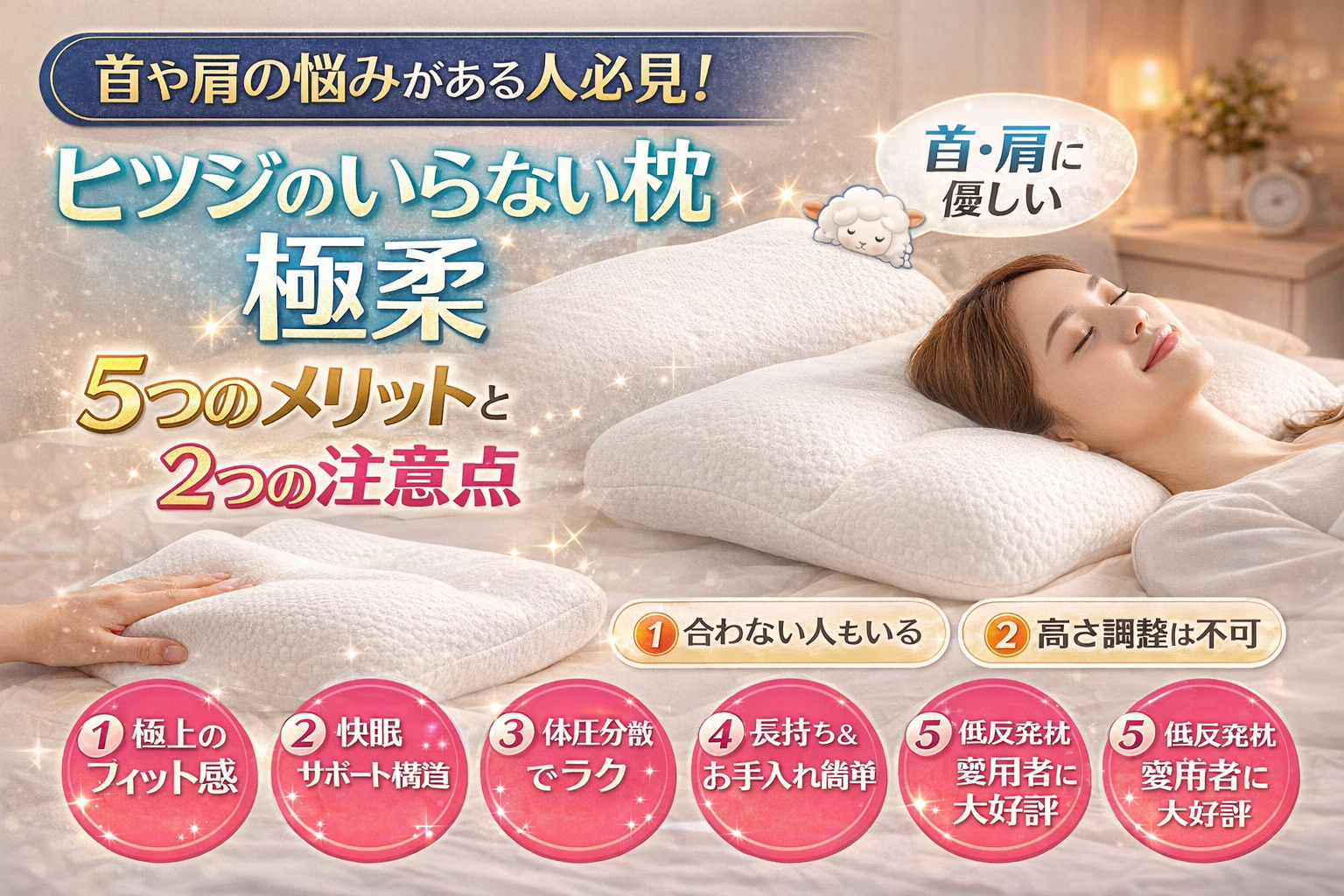 次に、ヒツジのいらない枕 極柔のメリットを整理します。